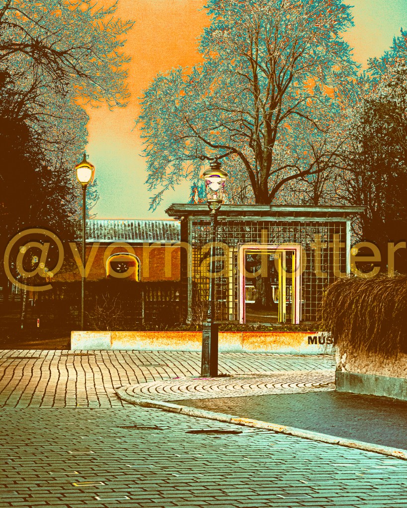 Värmlands Museum består av en gammal byggnad och en relativt ny byggnad. Här skymtar du den gamla som är ritad av arkitekt Cyrillus Johansson. Huset invigdes 1929 och är inspirerat av kinesiska och andra österländska kulturers byggande. Cyrillus Johansson ritade även pergolan som syns på den här bilden. Pergolans uppgift är att dölja den stora byggnaden, men om du står i pergolans öppning möts du av en 110 meter lång spegeldamm och där du kan se speglingen av Cyrillushusets port.
